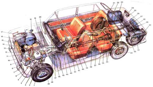 Устройство автомобиля ВАЗ 2101 Устройство автомобиля ВАЗ 2102 Двигатель Смазка двигателя Охолождение двигателя Система питания Устройство карбюратора Работа карбюратора Воздущный фильтр,глушители Сцепление Привод сцепление Коробка передач Работа коробки передач Карданная передача Задний мост Передняя подвеска Задняя подвеска Амортизаторы Рулевое управление Тормозные механизмы Привод тормозных механизмов Работа тормозных механизмов Генератор Стартёр Система зажигания Кузов Оборудование кузова Отопление и вентеляция салона, омыватели стёкол |